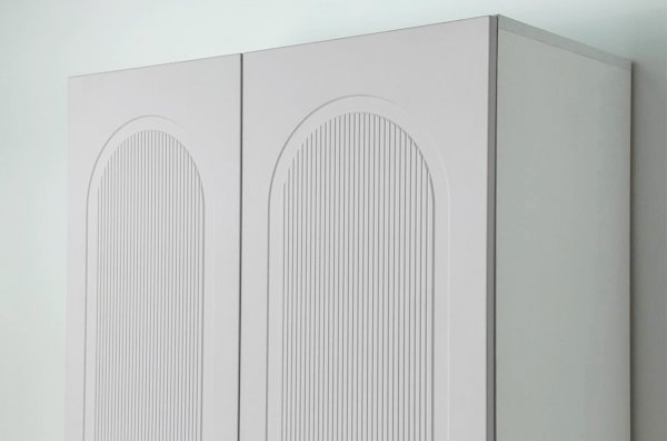 Корпус шкафа выполнен из ЛДСП толщиной 16 мм, фасады изготовлены из МДФ в плёнке ПВХ и декорированы фрезеровкой, подчёркивающей стиль серии Милана. Оригинальные круглые ручки и опоры придают шкафу аккуратный и современный вид, делая его гармоничной частью детского интерьера.