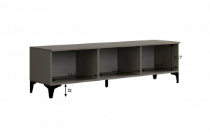 Тумба оснащена тремя распашными дверцами, которые открывают доступ к просторным внутренним полкам, идеально подходящим для хранения посуды, бытовой техники, аксессуаров или других предметов. Металлические ручки придают изделию современный вид и удобство в использовании.